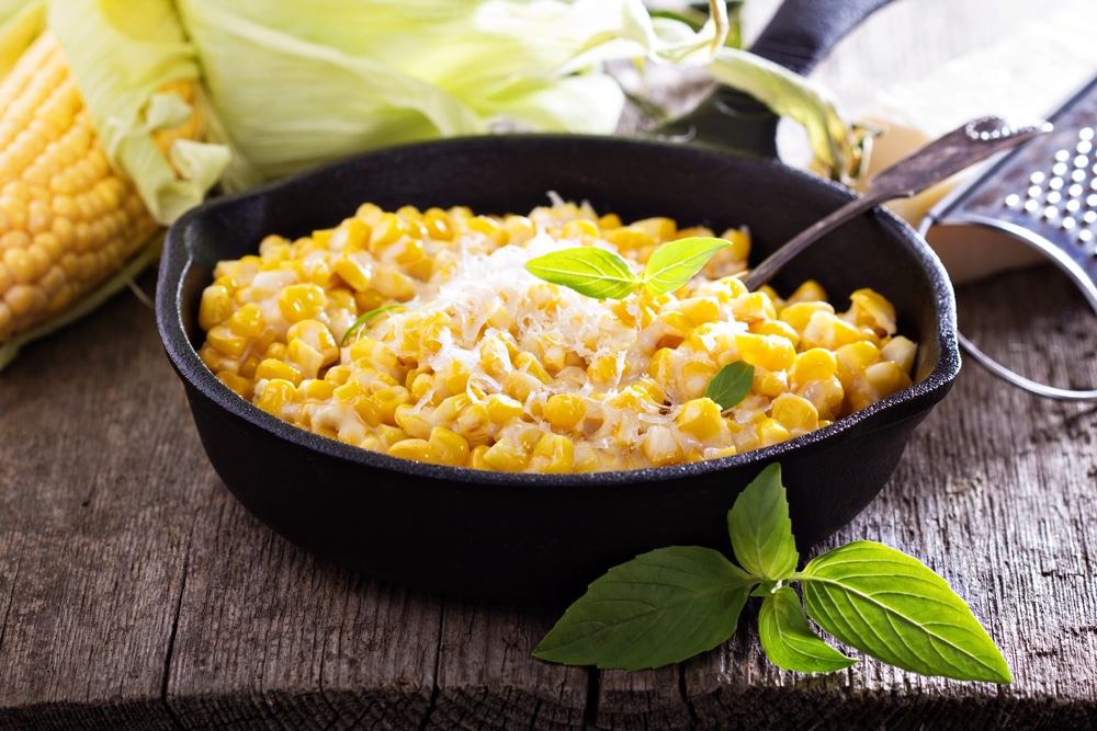 Sweet corn sautéed in butter with red bell pepper and onion.